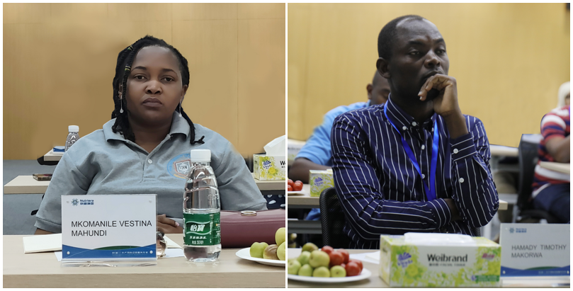 坦桑尼亚畜牧和渔业部首席渔业官员MKOMANILE VESTINA MAHUNDI(左)和渔业官员 HAMADY TIMOTHY MAKORWA(右)