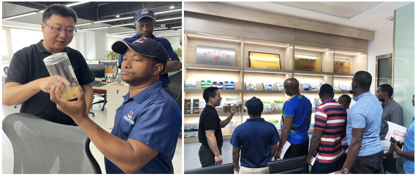 2023年8月12日,中国水产科学研究院淡水渔业研究中心国际合作与教育处团委书记钟纯怡女士带领坦桑尼亚高产高效水产养殖技术培训班学员一行30人到访联鲲集团,集团助理总裁刘名超先生、技术总监王耀华博士、技术经理章逃平先生、科技管理经理李旭宁女士等热情接待了来访嘉宾。