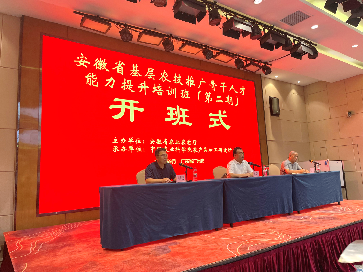 开班仪式专家从左往右依次为:中国农业科学院农产品加工研究所乡村产业振兴研究中心首席科学家刘朝亮博士、