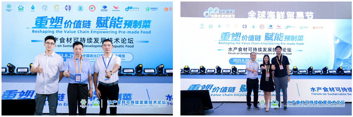 On 29 June, 2023, “Forum on Sustainable Development of Aquatic Food-Reshaping the Value Chain, Empowering Pre-made Food” was grandly held at Canton Fair (Guangzhou, China). The forum actively responds to the new strategy of developing pre-made food initiative by the state, a total of more than 200 participants have attended, including industrial governmental department, scientific research institutions, international organizations and enterprise representatives of aquatic feed, seedling, aquaculture, seafood, frozen product processing, R&D and production of pre-made food and media unit.