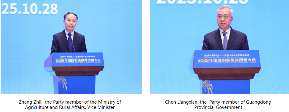 On October 28th, the 2025 International Agricultural Service Trade Conference  sponsored by China Ministry of Agriculture and Rural Affairs of China and the People's Government of Guangdong Province, organized by Foreign Economic Cooperation Center of the Ministry of Agriculture and Rural Affairs, Guangdong Provincial Department of Agriculture and Rural Affairs, was grandly held in Nansha, Guangzhou. The Conference with the theme of Innovation-Driven and Digital-Empowered: Sharing New Opportunities in Global Agricultural Service Trade, attracted Minister of Agriculture,Ambassador to China,Representatives of international organizations, specialists in agricultural trade services, and corporate  executives from more than 30 countries and regions around the world to discuss the future trend and opportunities cooperation in global agricultural service trade.