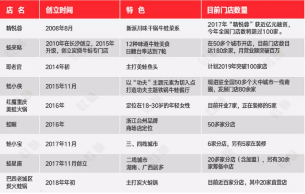 Según las estadísticas de Red Dining, hay cerca de 15.000 restaurantes con temática de rana toro solo en las cuatro ciudades de primer nivel de Beijing, Shanghai, Guangzhou y Shenzhen. Todo tipo de restaurantes con temática de rana toro en todo el país, como Jingyuerong, Folaida, Ge Laoguan, Frog Xiaoxia, Yongwa Frog, etc., son muy populares entre los consumidores, y la cantidad de cadenas de tiendas se está expandiendo rápidamente.