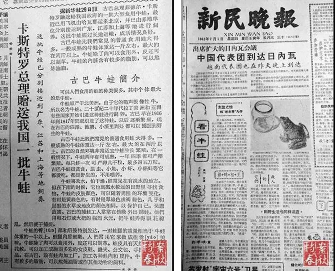"Diario del Pueblo" informó que el Primer Ministro cubano entregó una rana toro a mi país (izquierda) "Xinmin Evening News" informó que expertos chinos inspeccionaron la rana toro (Correcto)