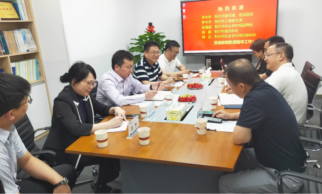 Li Shuibin (quinto desde la izquierda), miembro del Comité Permanente del Comité del Partido Municipal de Jingzhou y Ministro de Trabajo del Frente Unido, Luo Zhongping (sexto desde la izquierda), presidente de la Federación de Industria y Comercio de Jingzhou, y Zhao Fuchao (tercero desde la izquierda) , subdirector de la Oficina de Agricultura y Asuntos Rurales de Jingzhou